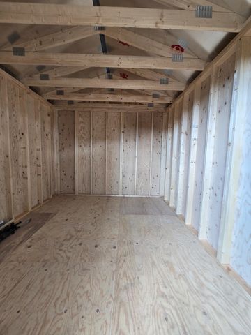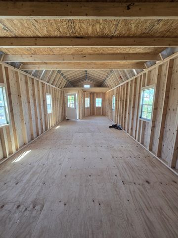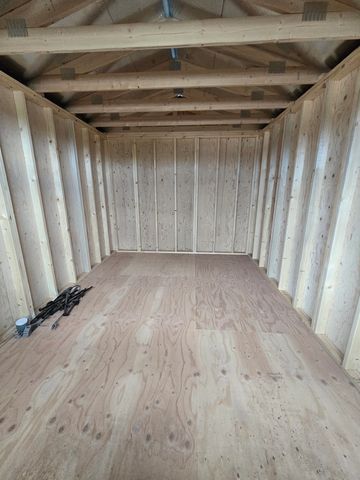 The building has Radiant Barrier (keeps the building cooler in summer, warmer in the winter), 2- lofts on each end w/1-2x3 & 1-transom window, each end has a door entry (9 ft roll up door & Double doors 72"), 12 o.c., 2-3x3 windows, Duratemp Siding, 5/8" Tongue & Groove Douglas fir Plywood, 150 MPH Hurrican Screws. The primary color is Warm Sand w/Pearl & Brick Red Roof. #466215