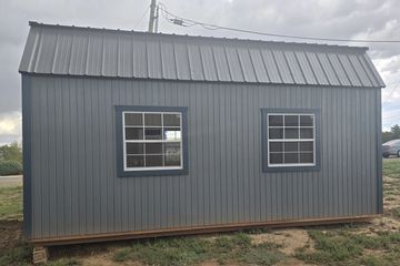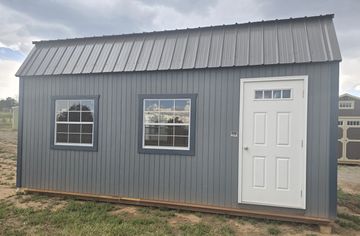 This building has Radiant Barrier (keeps the building cooler in the summer, warmer in the winter), 8' walls, 4-3x3 windows, 2-6' lofts on each side w/Transom Windows, 4-Lite Household door., and Duratemp Siding, Tongue & Groove 5/8" Douglas fir Plywood, 26 Gauge Metal Roof, 150 MPH Hurricane Screws, The Primary Graphite w/Steel Blue Trim & Volcanic Ash Roof. #500617