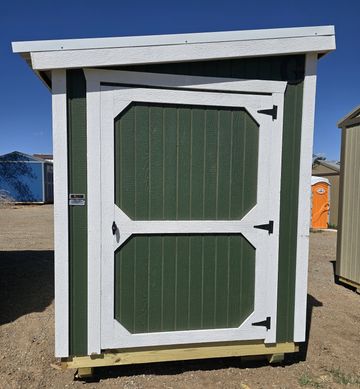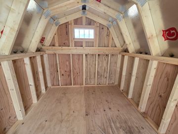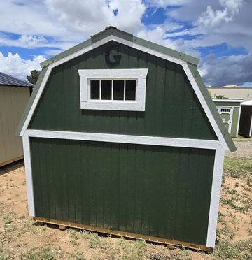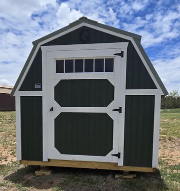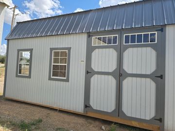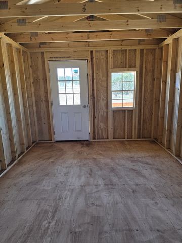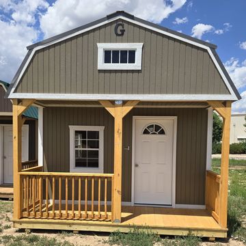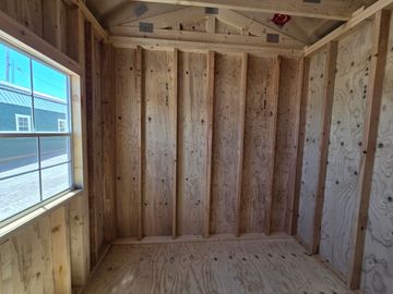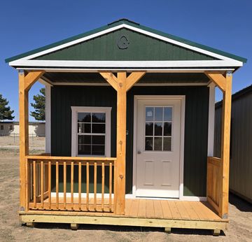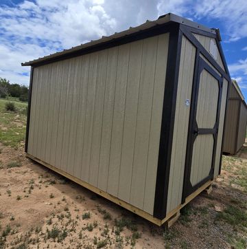 This building has Radiant Barrier (keeps the building cooler in the summer warmer in the winter) 8' walls, 1-2x3 window, 2-3x3 windows one on each side, 6' loft w/10"x23" transom window in the rear, 4' loft w/10:x23: transom window over the porch, 5-Lite Household Door, and 5/*" tongue & Groove Douglas Fir Plywood, Duratemp Siding, 150 MPH Hurricane Screws, and 26 Gauge The primary color is Clay w/Pearl & Cocoa Roof. #452867