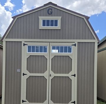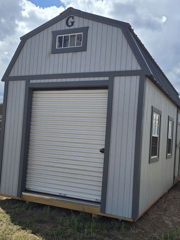 The building has Radiant Barrier (keeps the building cooler in summer, warmer in the winter), 2- lofts on each end w/transom window, 6' Roll Up Door on the end, 2-2x3 windows, Double Doors w/transom windows (72") 12 o.c., Duratemp Siding, 5/8" Tongue & Groove Douglas fir Plywood, 150 MPH Hurrican Screws. The primary color is Fossil w/Graphite & Volcanic Ash Roof. #497450