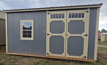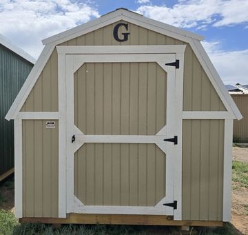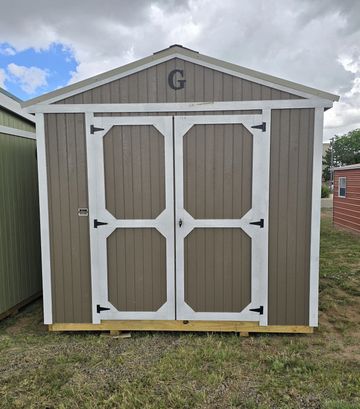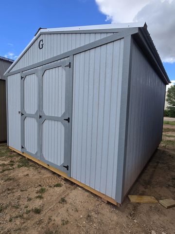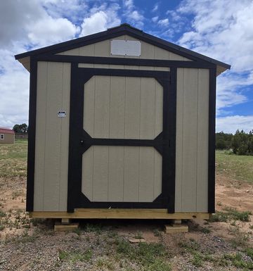 This building has Radiant Barrier (keeps the building cooler in the summer, warmer in the winter), 8' walls, Double Door (72"), and Duratemp Siding, Tongue & Groove 5/8" Douglas fir Plywood, 26 Gauge Metal Roof, 150 MPH Hurricane Screws. The Primary Desert w/Pearl Trim & Oatmeal Roof. #493925