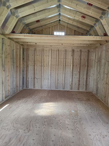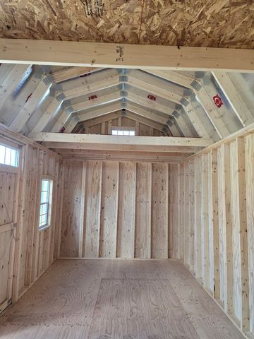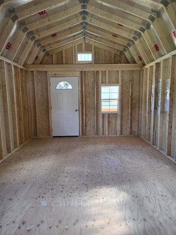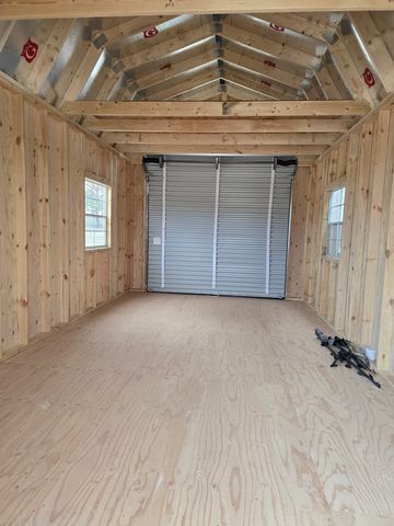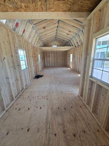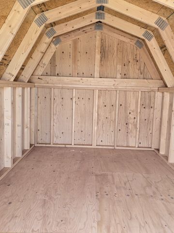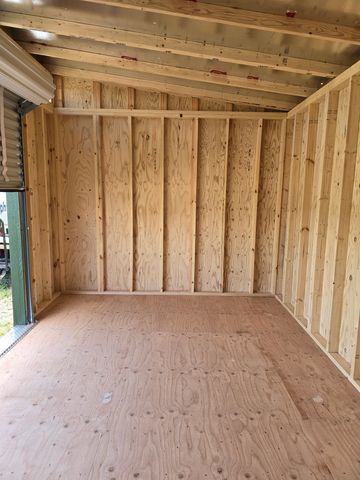 This building has Radiant Barrier (keeps the building cooler in the summer warmer in the winter), 8' walls, 2- 2x3 SP Windows, 2-6' Lofts on both sides w/Transom Windows, Duratemp siding, 5/8" Tongue & Groove Douglas Fir Plywood, 150 mph Hurricane Screws, and Double Doors w/Transom Windows. The Primary Paint is Light Khaki w/Pearl & Sand Roof. #465772