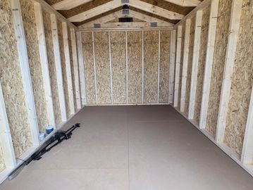 Overall, Height 8'6" w/1.5/12 Pitch Roof, 4" overhang on all four sides (The overhang on the gable ends is trimmed and will not have vents.), Patient Soffit Vents on Front & Back, 2x6 Floor Joist, 16 O.C. Studs w/double studs every 48", and Single Door. Roof Design change to meet IBC Requirements. Optional Radiant Barrier or custom build.